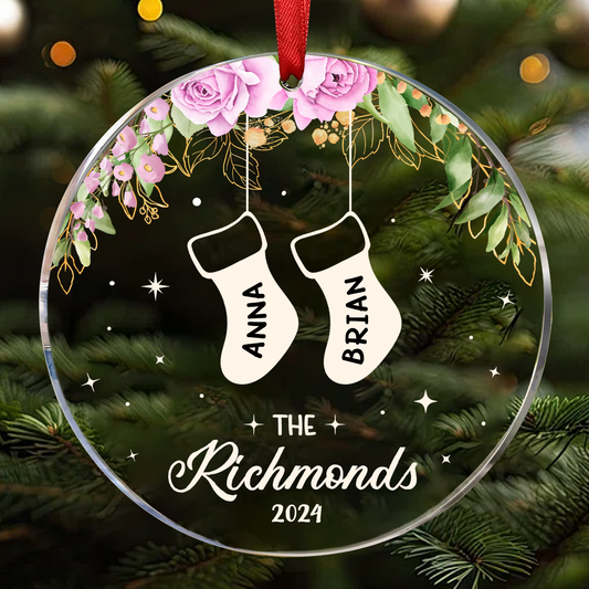 Family Christmas Stocking - Personalized Circle Acrylic Ornament