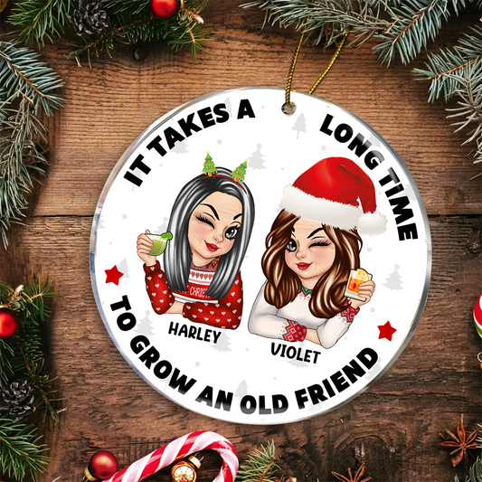 It Takes A Long Time To Grow An Old Friend Christmas - Personalized Circle Acrylic Ornament