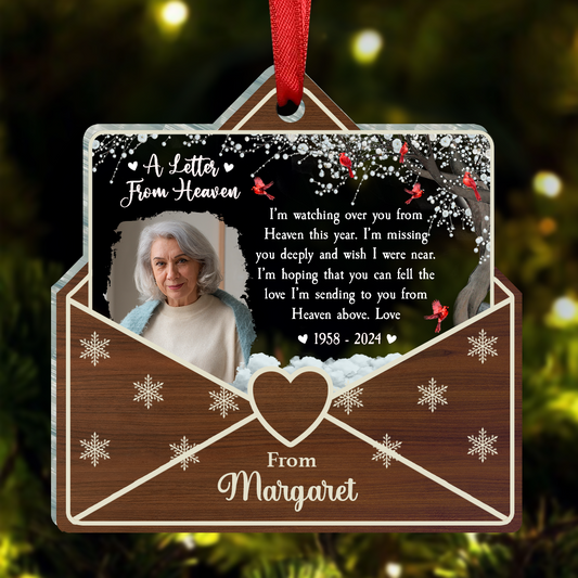 Custom Photo Letter From Heaven Memorial Christmas - Personalized Custom Shaped Acrylic Ornament