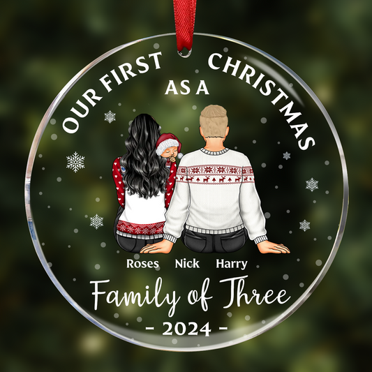 First Christmas As A Family Of Three New Parents - Personalized Circle Ornament