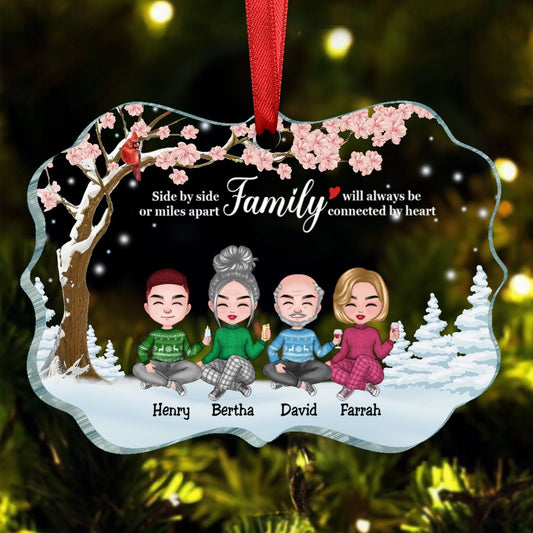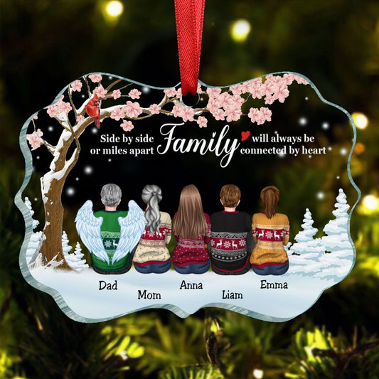Family - Side By Side Or Miles Apart Family Will Always Be Connected By Heart - Personalized Acrylic Ornament