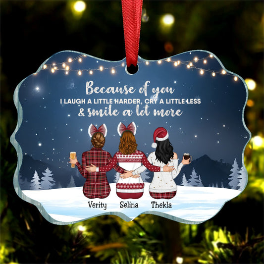 Family - Because Of You I Laugh A Little Harder, Cry A Little Less & Smile A Lot More - Personalized Christmas Ornament - NN47