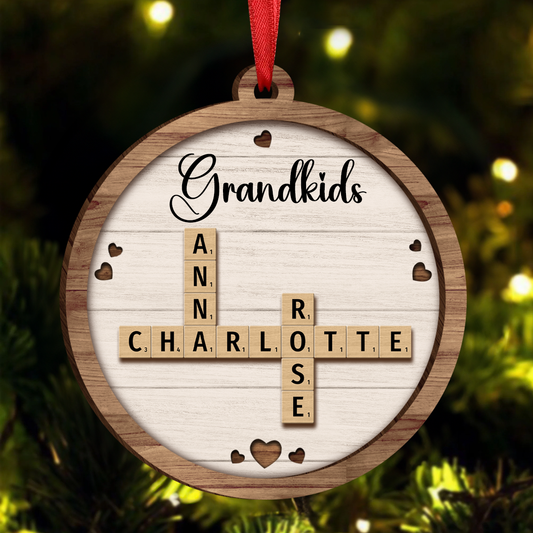 Grandkids Crossword Puzzle Art - Personalized Wooden Ornament