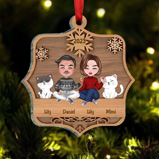 Family - Cute Family Sitting - Personalized Ornament (LH)