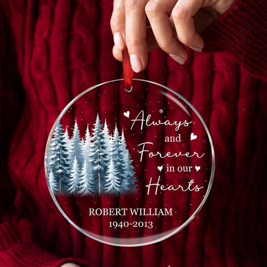 Always And Forever In Our Hearts Memorial Keepsake Personalized Acrylic Ornament
