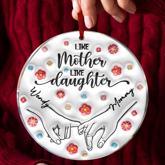Like Mother Like Daughter Floral 3D Inflated Effect Personalized Acrylic Ornament, Christmas Gift For Mom, Daughter