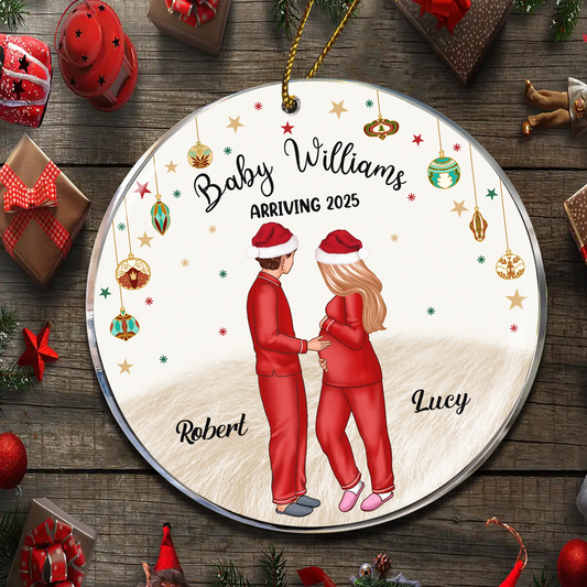 Personalized Pregnancy Ornament, Expecting Family Christmas Personalized Circle Ornament, New Mom Christmas Gift