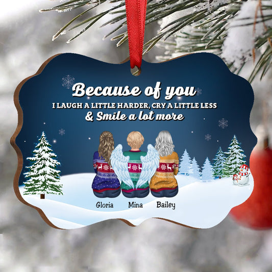 Family - Because Of You I Laugh A Little Harder, Cry A Little Less & Smile A Lot More - Personalized Christmas Ornament - NN47