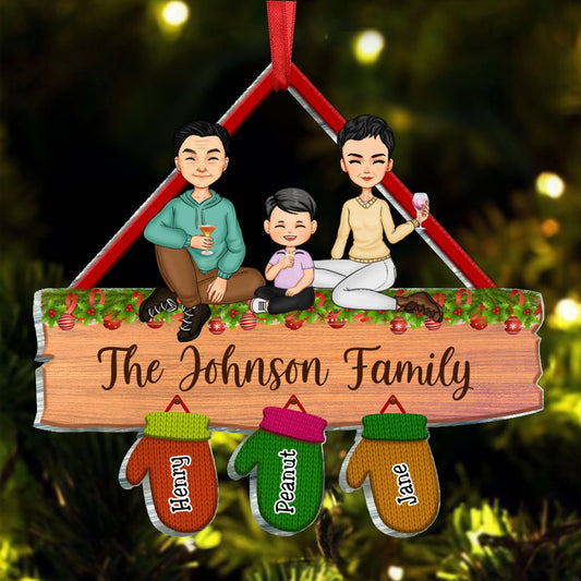 Family - Family Peeking Christmas Glove - Personalized Circle Ornament (II)