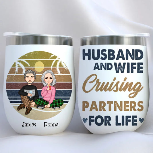 Couple - Husband And Wife Cruising Partners For Life - Personalized Wine Tumbler (HN)