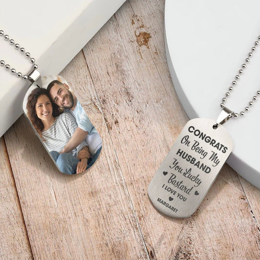 Couple - Congrats On Being My Husband You Lucky - Personalized Custom Necklace