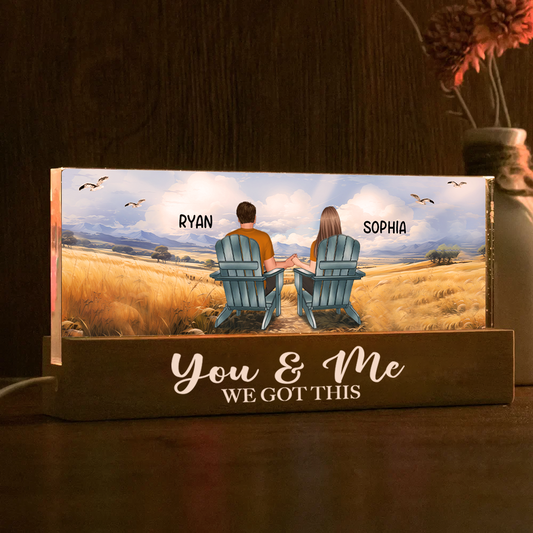 Couple Sitting At Beach Retro Personalized LED Night Light, Anniversary Gift For Couple, Husband, Wife, Dad, Mom