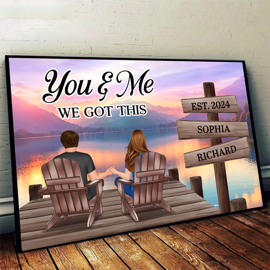 Lake Dock Couple Sitting Holding Hands Sign Posts Personalized Poster, Home Decoration, Gift For Her, For Him