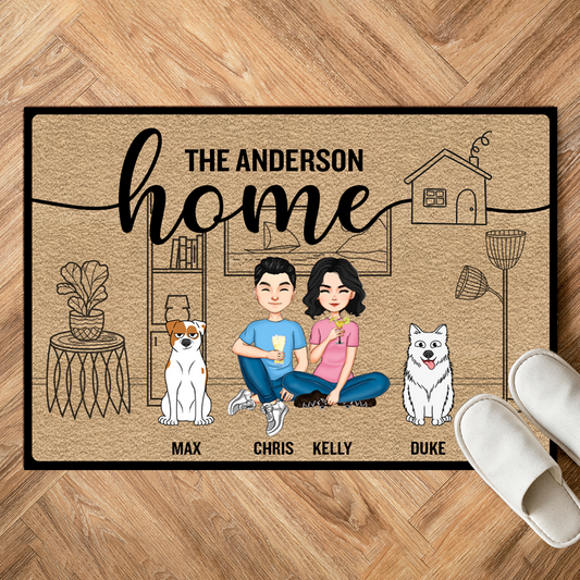 Couple Home With Pet And Kid - Personalized Doormat
