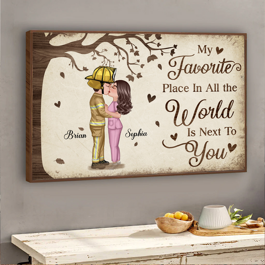 Favorite Place In The World Couple Kissing Personalized Poster, Gift by Occupation For Her, For Him