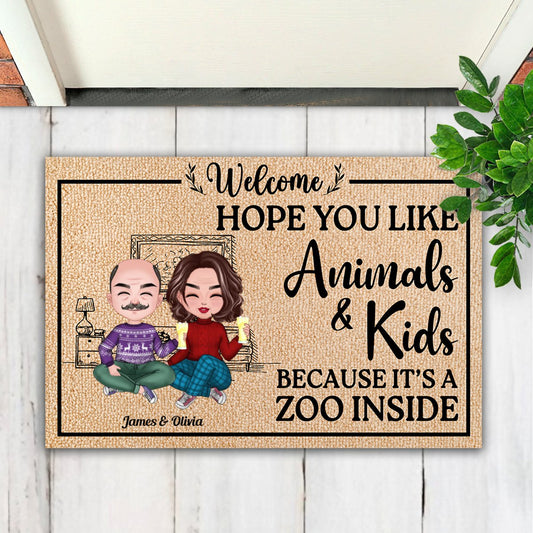 Couple - Hope You Like Animals And Kids - Personalized Doormat