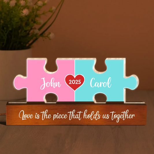 Love Is The Piece That Holds Us Together Couple Name Puzzle LED Night Light, Personalized Romantic Home Bedroom Decor For Couples, Gifts For Her, For Him