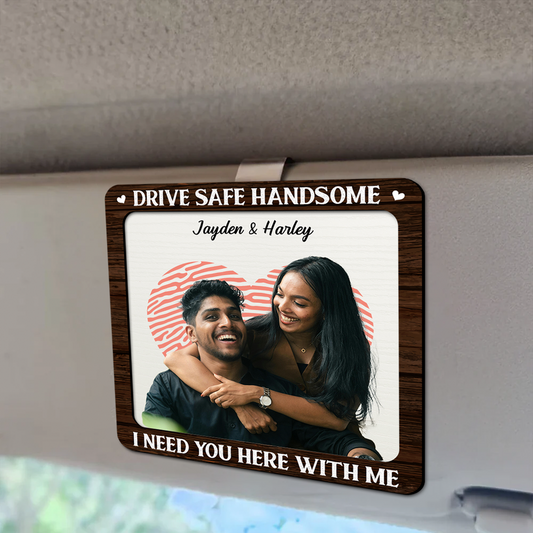 Custom Photo Kissing Couple Drive Safe I Need You Here With Me - Personalized Custom Shaped Car Visor Clip