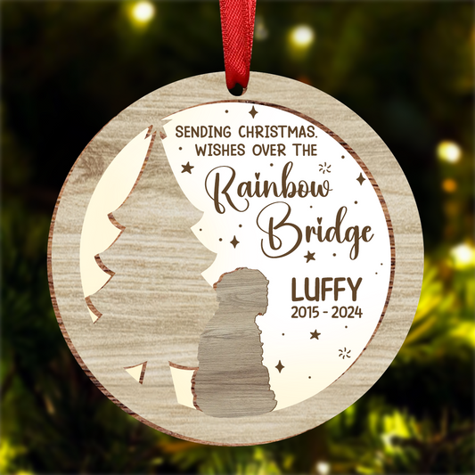 Memorial Dog Sending Christmas Wishes Over The Rainbow Bridge - Personalized Ornament