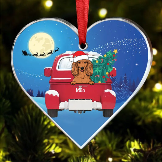 Dog Lovers - Dog Christmas Red Truck - Personalized Heart Ornament