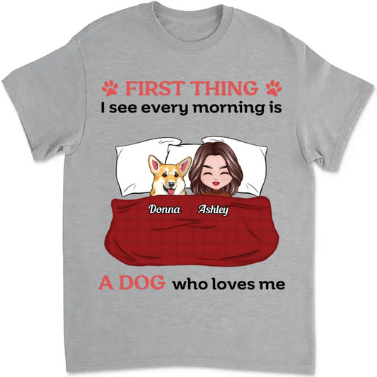 Dog Lovers - First Thing I See Every Morning Is Dogs Who Love Me - Personalized Unisex T-shirt