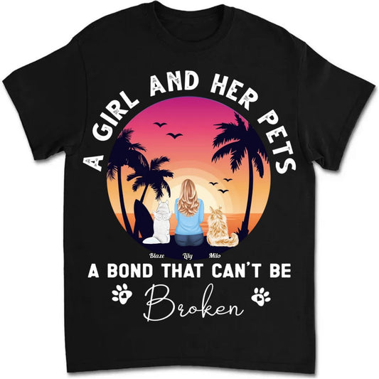 Pet Lovers - A Girl And Her Dogs A Bond That Can't Be Broken - Personalized T-Shirt