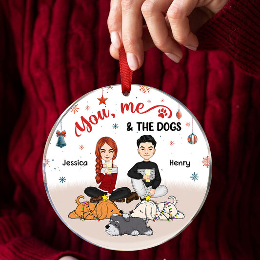 Christmas You & Me And The Dog - Personalized Circle Acrylic Ornament