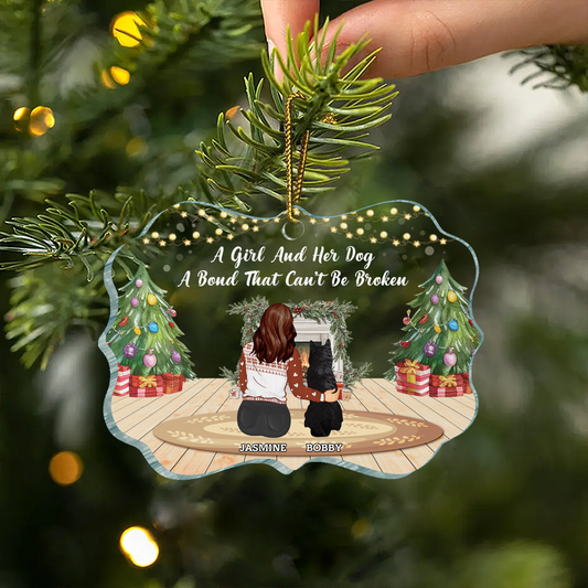 A Bond That Can't Be Broken Dog Hugging Christmas - Personalized Medallion Acrylic Ornament