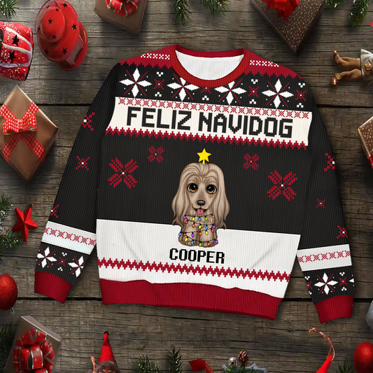 Christmas Big Eyes Dog Feliz Navidog - Personalized Unisex Ugly Sweater