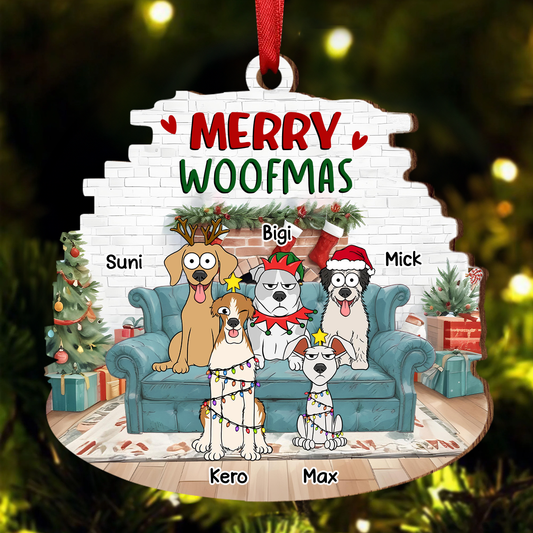 Merry Woofmas Dog Lovers Red Truck - Personalized Wooden Ornament