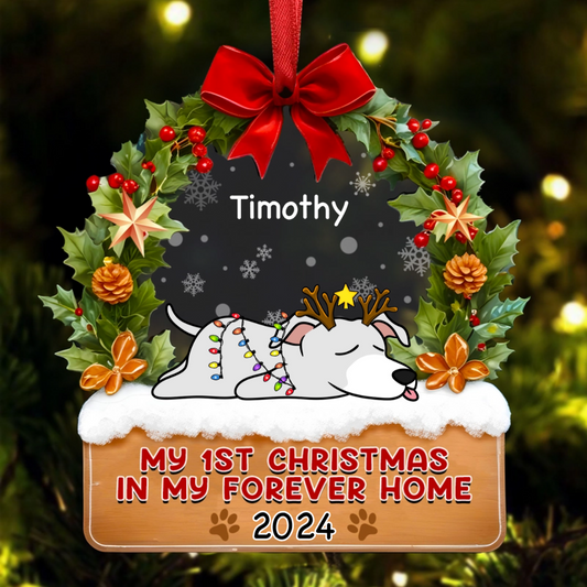 Lying Dog My 1st Christmas In My Forever Home - Personalized Acrylic Ornament