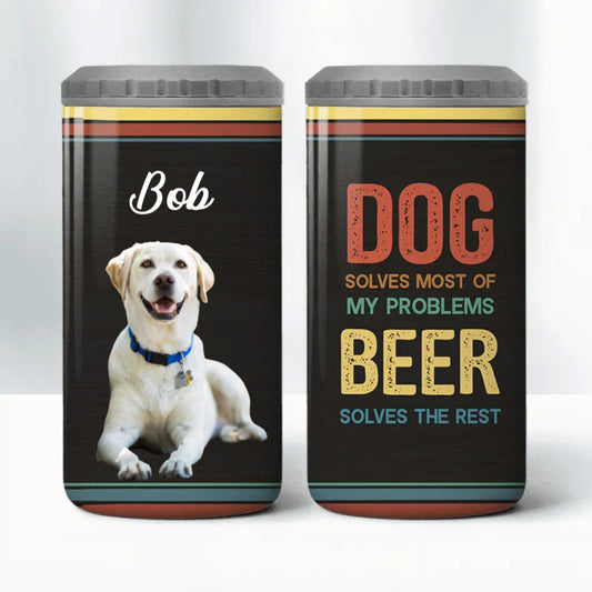 Dog Lovers - Dog Solves Most Of My Problems, Beer Solves The Rest - Personalized Can Cooler