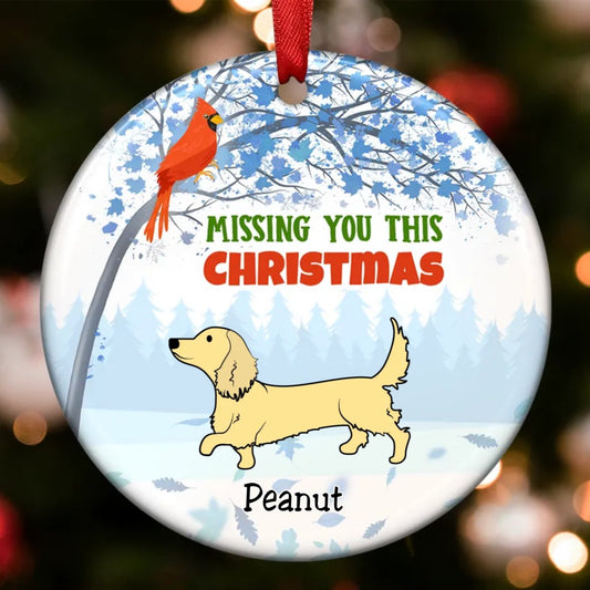 Dog Lovers - Dachshund Memorial Cardinal - Personalized Circle Ornament