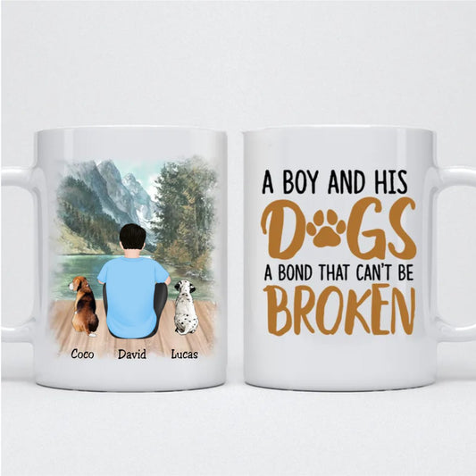 Dog Lovers - A Boy And His Dogs, A Bond That Can't Be Broken - Personalized Mug