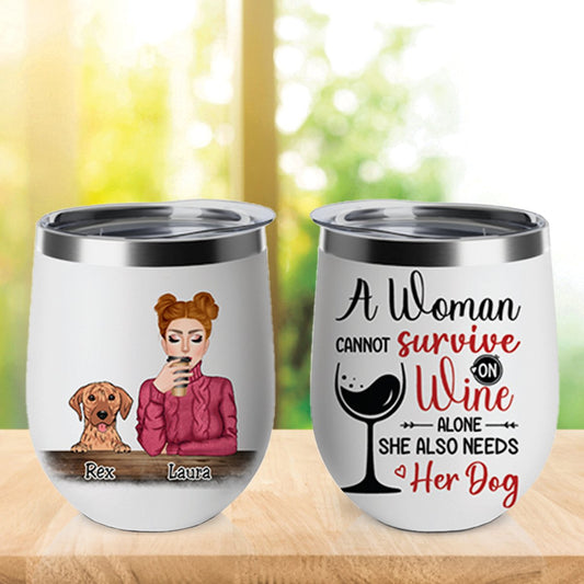 Dog Lovers - A Woman Cannot Survive On Wine Alone She Also Needs Her Dog - Personalized Wine Tumbler