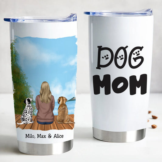 Personalized 20oz Stainless Steel Dog Mom Tumbler - Keeps Drinks Hot or Cold