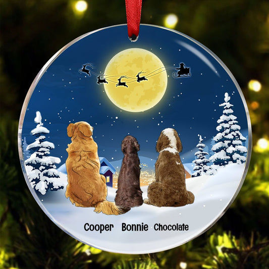 Dog Lovers - Dog Christmas Watching Santa - Personalized Acrylic Ornament