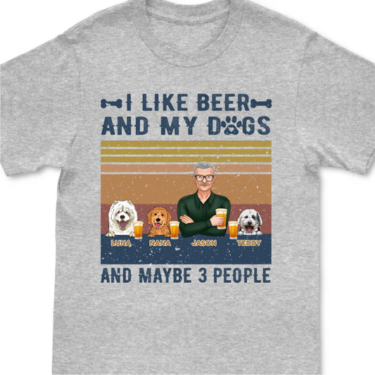 I Like Beer, And My Dogs, And Maybe 3 People - Personalized T-shirt Hoodie SweatT-shirt- Birthday Gift For Dog Lovers, Beer Drinkers