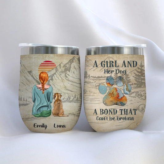 Dog Lovers - A Girl And Her Dogs A Bond That Cannot Be Broken - Personalized Wine Tumbler