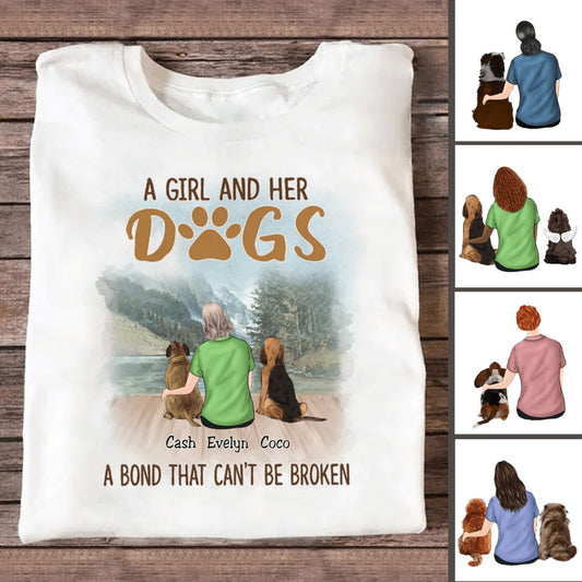 Dog Lovers - A Girl And Her Dogs, A Bond That Can't Be Broken - Personalized White Unisex T-Shirt