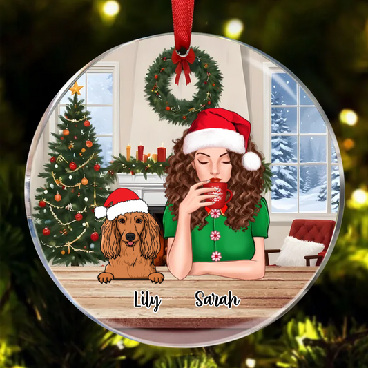 Dog Mom With Peeking Dogs Christmas Personalized Circle Ornament