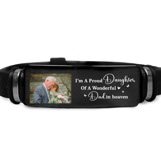Custom Photo I'm A Proud Daughter - Personalized Engraved Bracelet