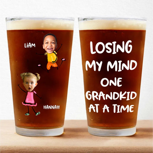 Family - Custom Photo Losing My Mind One Kid At A Time - Personalized Pint Glass