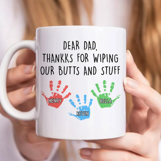 Family - Dear Dad Thanks For Wiping Our Butts And Stuff - Personalized Mug