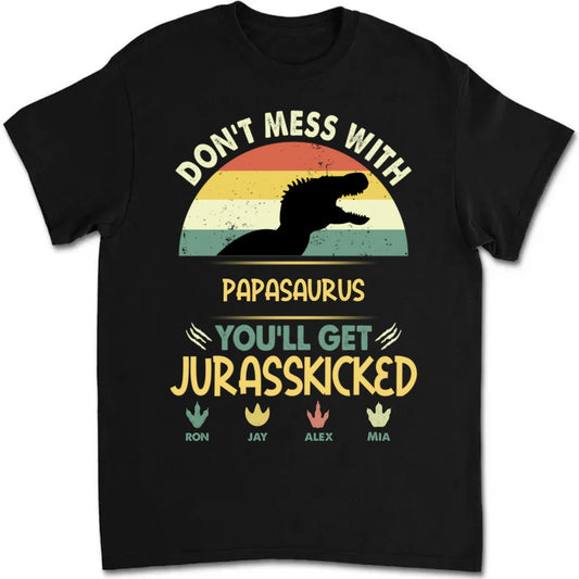 Family - Don't Mess With Papasaurus - Personalized Black T-shirt