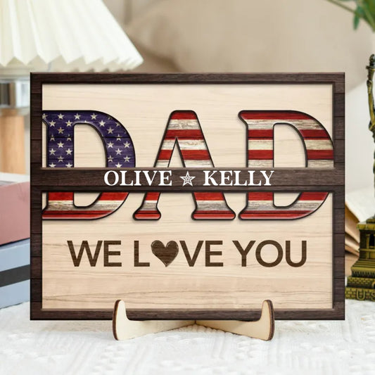 Family - Dad We Love You - Personalized 2-Layered Wooden Plaque