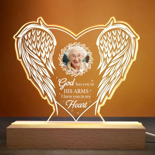 Family - Custom Photo God Has You In His Arms I Have You In My Heart - Personalized Acrylic LED Night Light