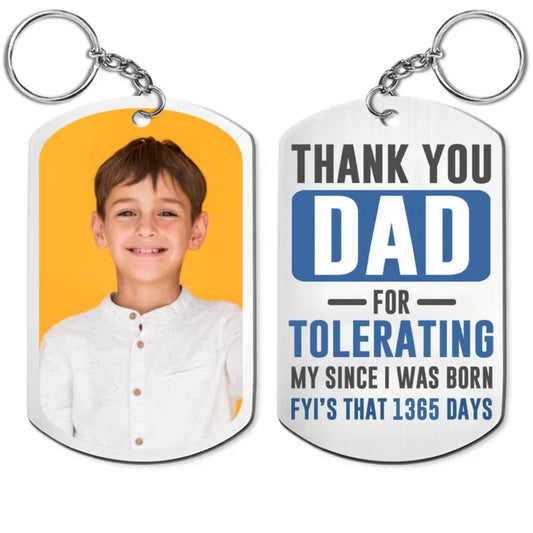 Family - Custom Photo Thank You Dad For Tolerating Me Since I Was Born - Personalized Aluminum Keychain