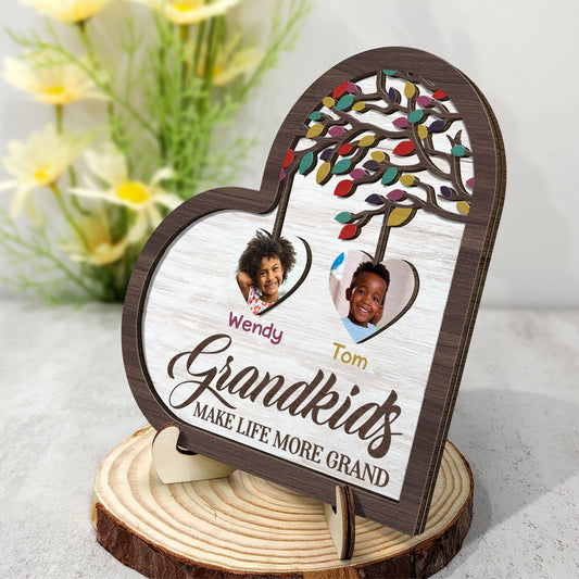 Family - Custom Photo Grandkids Make Life Grand - Personalized 2-Layered Wooden Plaque With Stand
