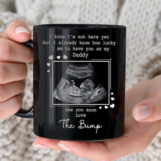 Family - Custom Photo I Know I'm Not Here Yet - Personalized Black Mug - Gift For Dad, Father, New Parents